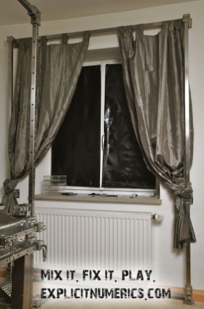 Fixierrahmen mit Abstand zur Wand - rundherum können Gleitwagen eingesetzt werden. Denkbar wäre natürlich auch eine einzelne Stange über dem Fenster. Hervorragend nicht nur als toughe Vorhangstange einsetzbar.