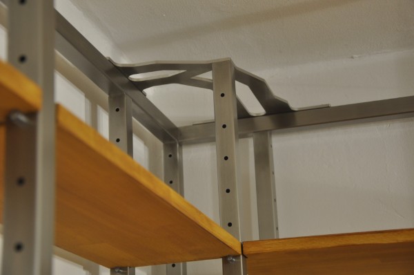 Ein schlichtes, elegantes Wandboard. Gebaut aus einer Minimalmenge von Einzelteilen. Rasch das Brett entfernt, bietet es eine ideale Wandfixiermöglichkeit. Die Gleitwagen halten bei dieser Variante gleichzeitig den Regalboden.