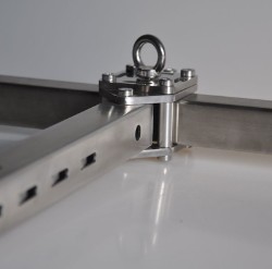 Hier die Basis des Systems. Die Befestigungsanker (funktionieren vertikal und horizontal) als Träger für die Vierkantrohre. Auf den Rohren kann einer unserer den speziellen Bedürfnissen angepasster Gleit- und Fixierwagen fahren: